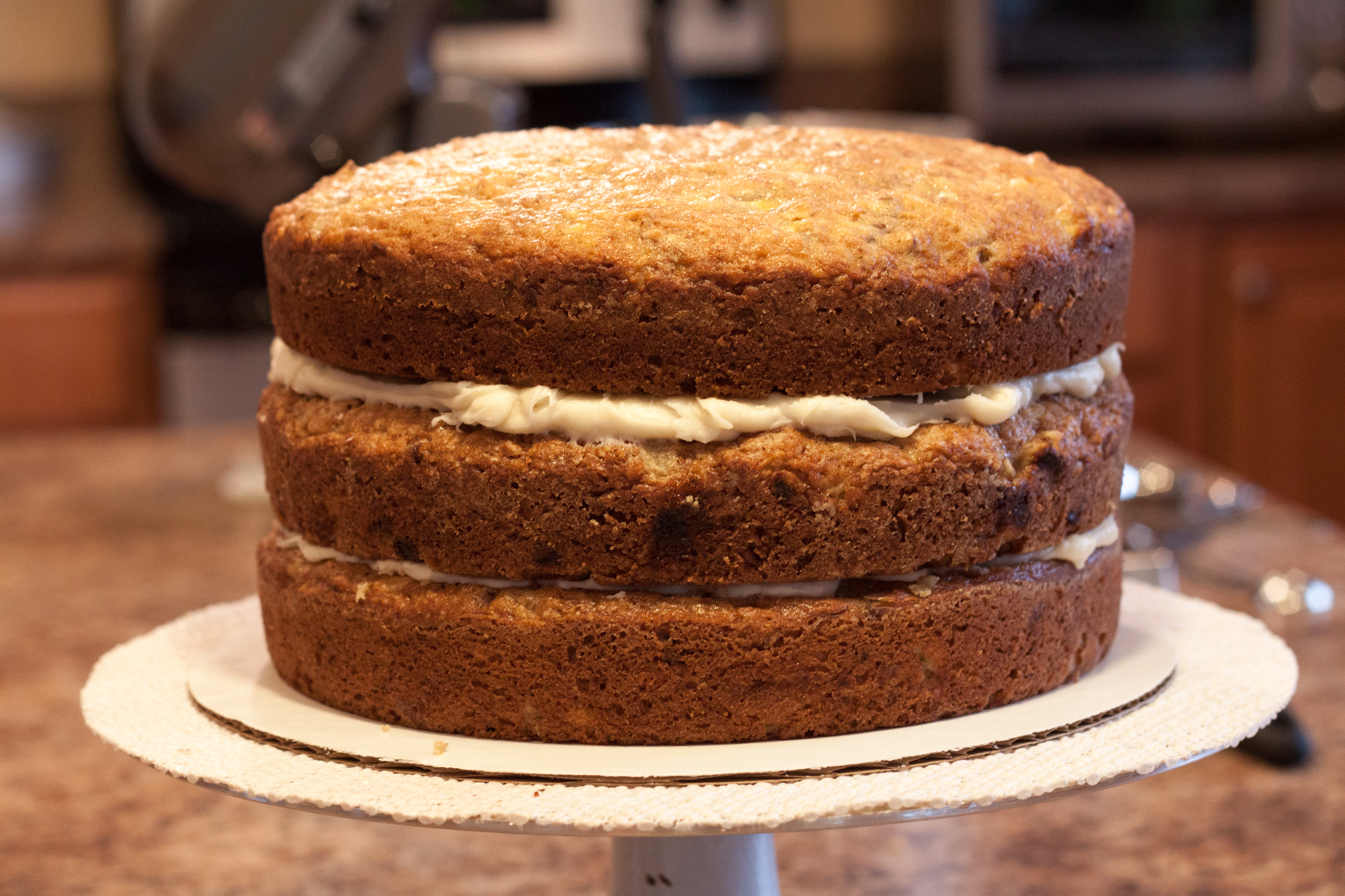 When asked have you ever had hummingbird cake?? Most people will say no, what is it?? The most distinguishable ingredients that make this layered cake amazing are ripe bananas, crushed pineapple, pecans, cinnamon, and a slathering of cream cheese frosting. One of the first recipes was originally published in a 1978 issue of Southern Living and was submitted by a Mrs. L. H. Wiggins of of North Carolina. It is my favorite cake of all time, I will even order it if there is a layered chocolate cake on the menu. I decided that I wanted to make one for my birthday celebration with my family so I found a version of this recipe from Art Smith, chef and owner of Table Fifty-Two in Chicago, Illinois. Whenever my husband and I visit Chicago we always have dinner at Table Fifty-Two. Mmmm, they serve fried chicken on Sundays, have the best flat bread pizza, macaroni and cheese to die for and of course hummingbird cake. No matter how full I may be I have to order the hummingbird cake. A must visit if you are ever in Chicago. I made this a triple layer cake with three batches of the cream cheese frosting for between the layers, the crumb coat and the final frosting. To finish off the cake, I toasted about 1/2 cup pecans and finely chopped them in the food processor. I gently smashed them on the frosting around the bottom of the cake and sprinkled them around the top. After devouring the cake my husband and I agree that next time I will try to cover the cake in the chopped pecans for an added crunch with every bite. This cake has a wonderful banana flavor, it is very dense and moist, has a slight crunch from the pecans and is covered in a thick cream cheese frosting that is to die for. Here is the link to the recipe Art Smith’s Hummingbird Cake.
